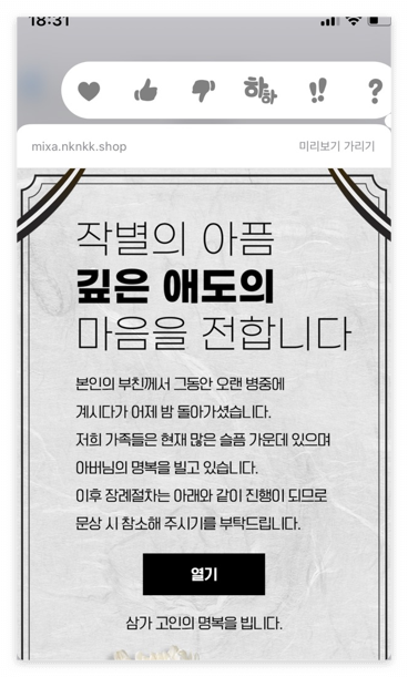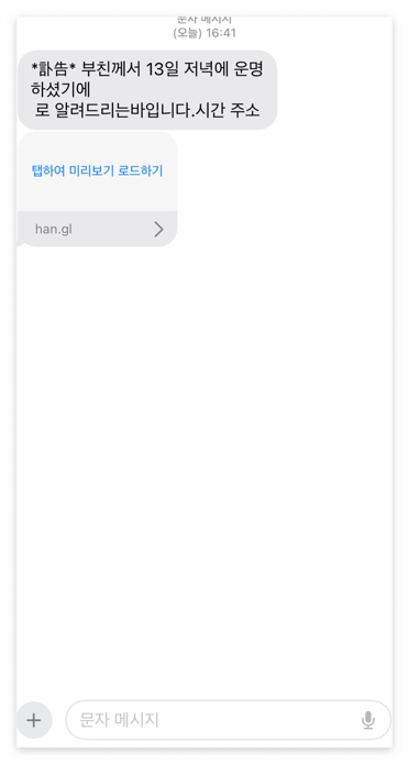어느날 지인의 번호로 부고 문자가 날라왔다.